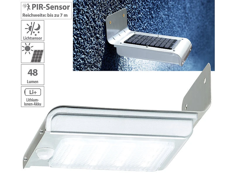 - LED-Solar-Wandleuchte mit Dämmerungs- und PIR-Sensor