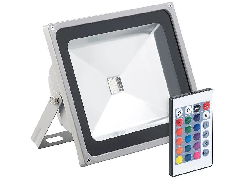 - LED-Fluter inklusive Fernbedienung mit Knopfzelle (CR2025) und deutscher Anleitung