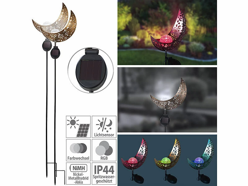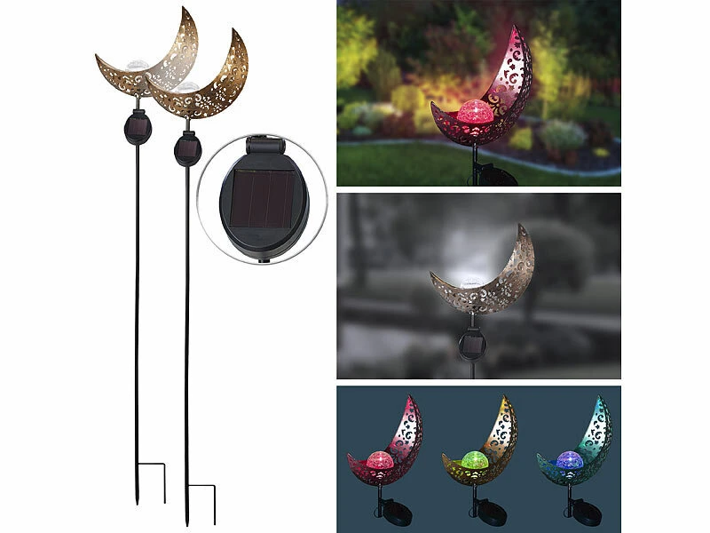 Lunartec 2er Set Solar Mondl. Aus Metall Mit Erdspieß, RGB Farbwechsel LED