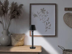 - Kabellose Outdoor-Tischlampe mit Akku und Qi-Ladematte