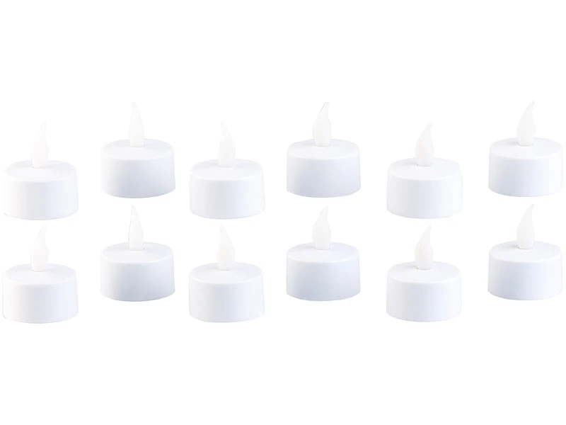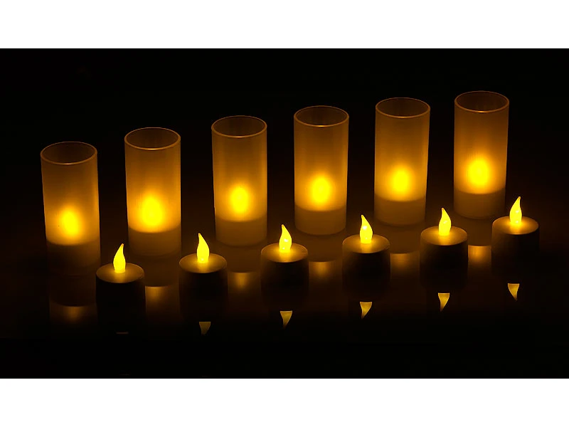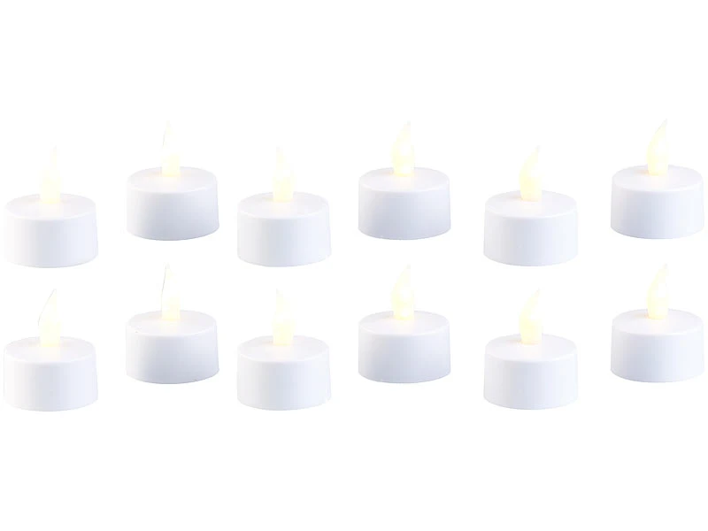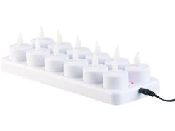 - 12 wiederaufladbare LED-Teelichte, mit Schalter auf der Unterseite