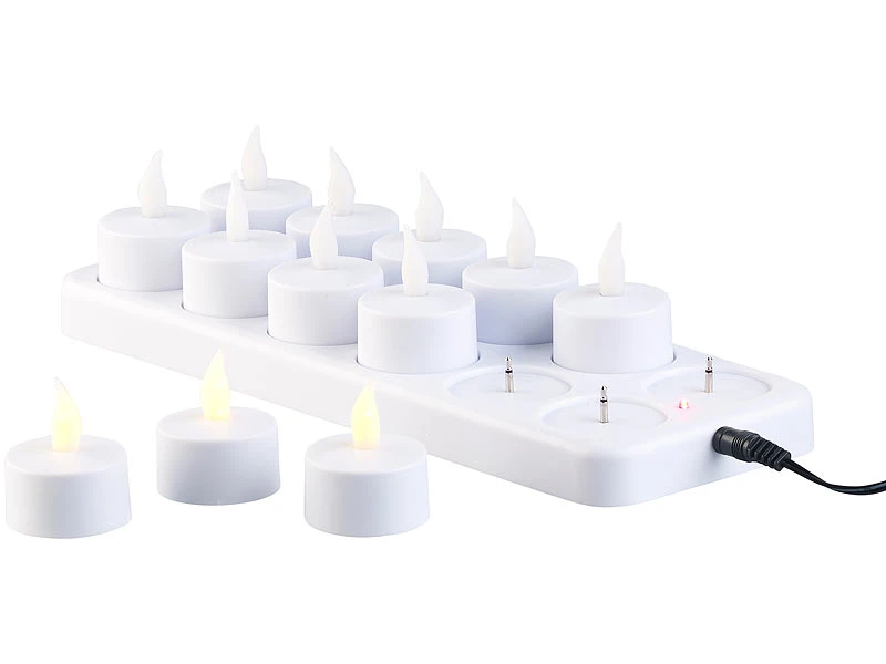 - Inklusive Netzteil, Windlicht-Acrylgläsern, 12-facher Ladestation und deutscher Anleitung – LED Teelichter zum Aufladen – AuĂźerdem relevant oder passend zu: Lampe, Licht, Flamme, Lichter, 12er Set, Partylicht, elektrisch, Beleuchtung, Windlichter, wiederaufladbar