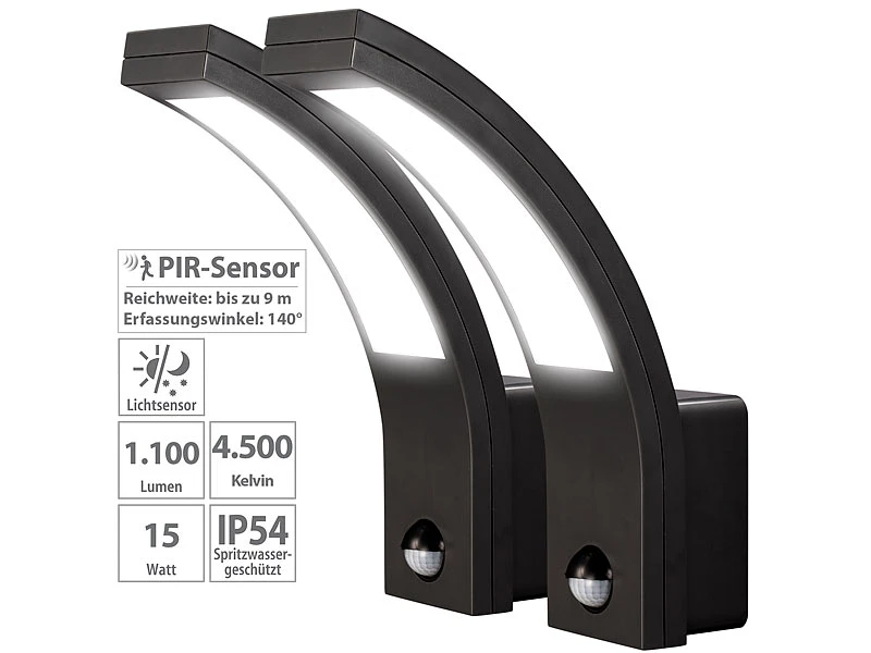 - 2er-Set LED-Außenleuchten inklusive Montagematerial und deutscher Anleitung – Außenlampe LED mit Bewegungsmelder – Außerdem relevant oder passend zu: Fluter, Laterne, Wegeleuchte, Gewächshaus, Wegeleuchten, Lampe Bewegung, Aussenlicht, Aussenleuchte Bewegungsmelder