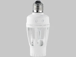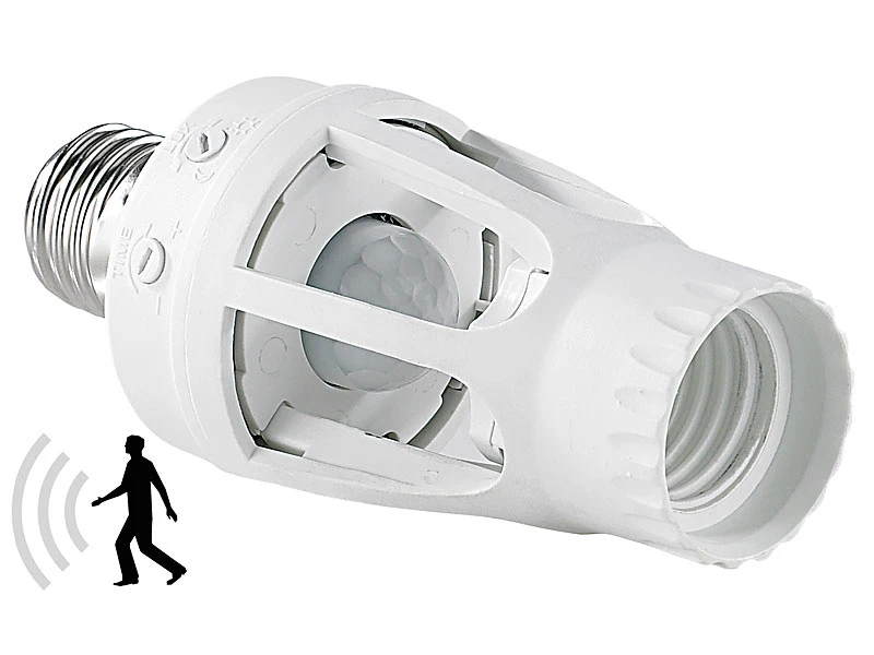 - Automatische E27-Fassung mit 360°-Bewegungsmelder und Tageslicht-Sensor