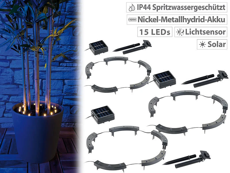 - 3er-Set Solar-Licht für Pflanzen: Kette aus 5 Leuchtelementen mit je 3 LEDs