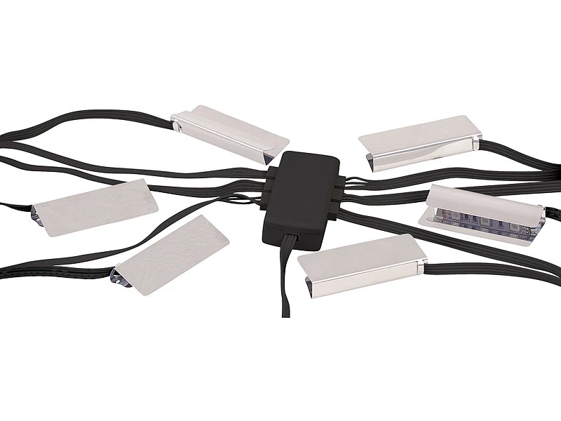 - 4x Glasbodenbeleuchtung mit 6 LED-Clips inklusive Netzteil und deutscher Anleitung – Regal Lichtleiste – AuĂźerdem relevant oder passend zu: Leiste, Leuchte, Leisten