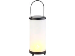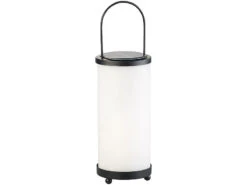 - Stromversorgung: integrierter Li-Ion-Akku mit 1.200 mAh für bis zu 8 Stunden Leuchtdauer, lädt per Solarpanel (62 x 62 mm)