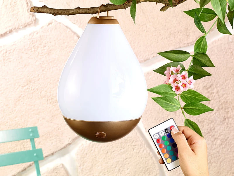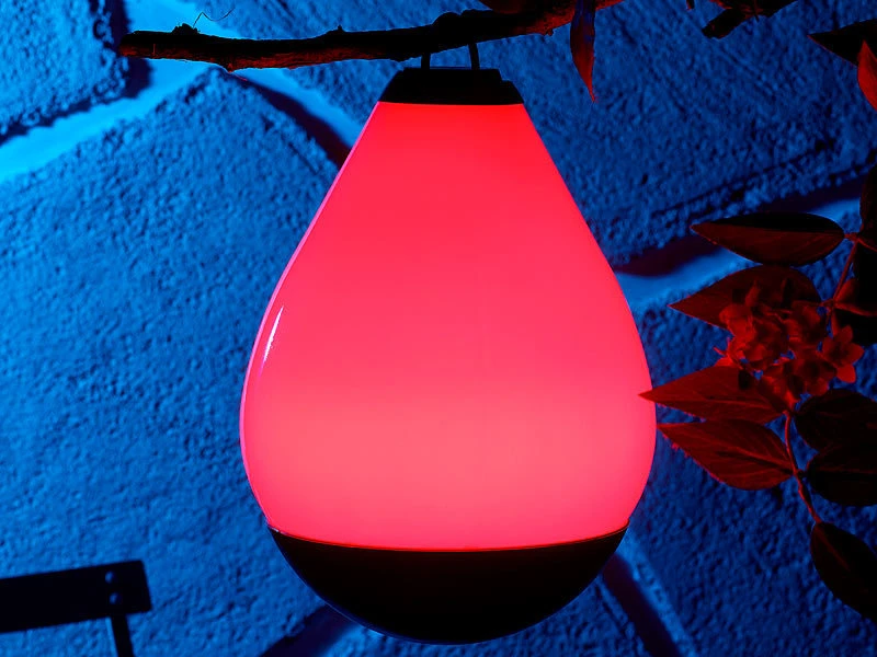 Für die Gartenparty ein absoluter Hit: Tanzen Sie zum farbenfrohen Lichtspiel. Da wird Ihr Garten zur Disco! Hängen Sie die Leuchte am praktischen Bügel im Garten auf, beim Camping an einen Baum, oder stellen Sie sie auf Ihren Terrassentisch.