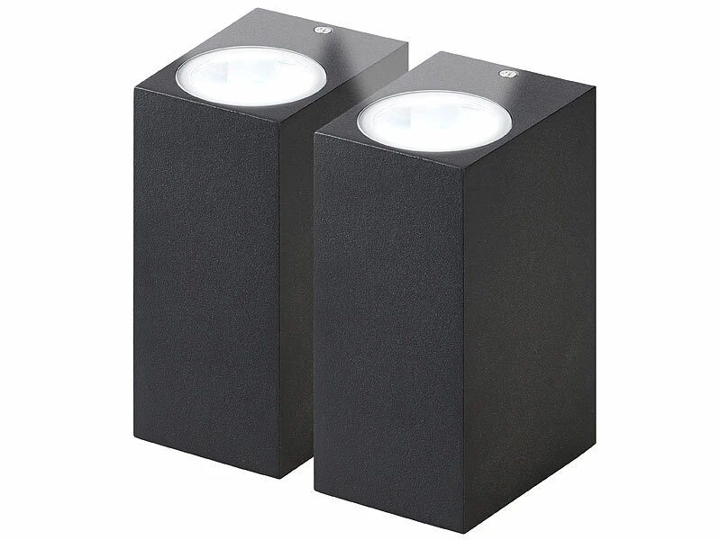 Lunartec Fassadenlampe:2er Set Eckige Up/Down Lampe Für Innen U. Außen,2x GU10 Sockel,schwarz