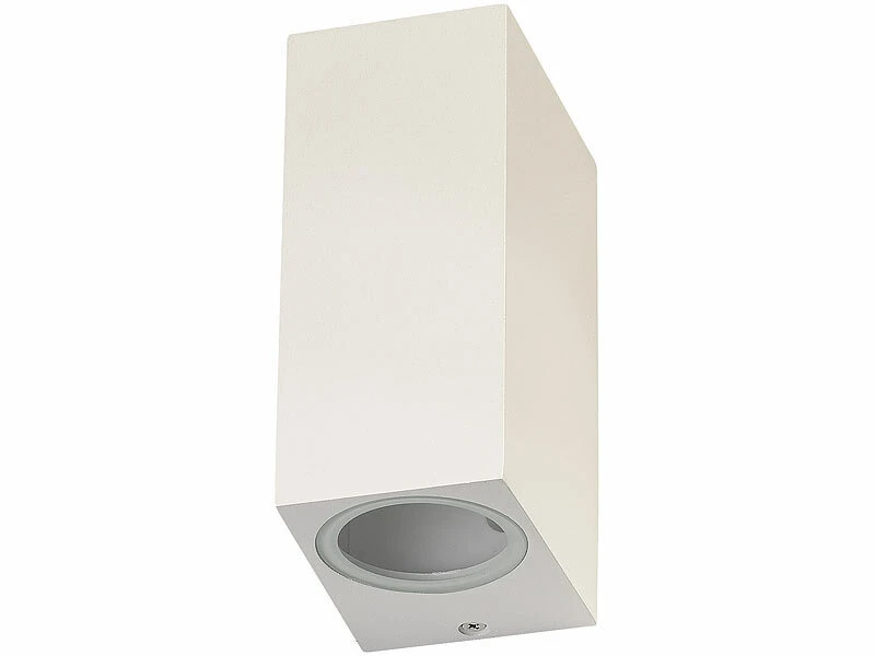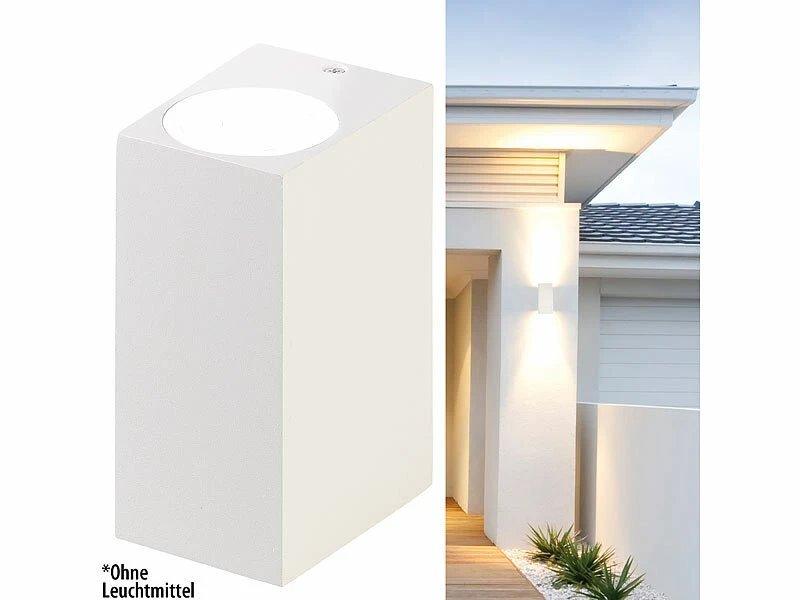 Lunartec Fassadenlampen:Eckige LED-Wandleuchte, Up/Down Lampe, 2x GU10 Sockel, IP44, Weiß