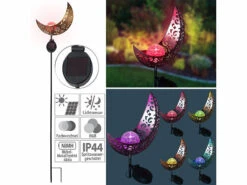 - Solar-Mondleuchte inklusive Erdspieß (3-teilig) und deutscher Anleitung