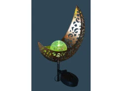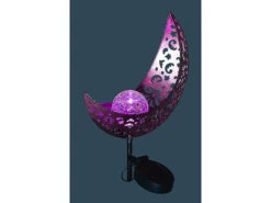 Verschönert Ihren Außenbereich: Die bunt leuchtende Kugel in der Sichel des Mondes sorgt bei Einbruch der Dunkelheit für ein traumhaftes Ambiente in Ihrem Garten, auf dem Balkon u.v.m. Tagsüber ist die Mondleuchte ein schöner Blickfang.