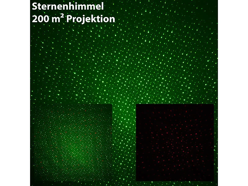 Greifen Sie nach den Sternen: Dank dreier Farb-Effekte lassen Sie den Sternenhimmel rot oder grün erstrahlen. Oder Sie tauchen ihn in rotes und grünes Licht gleichzeitig.