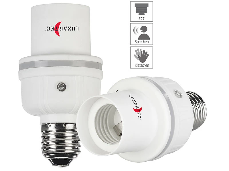 - 2 Lampensockel-Adapter inklusive deutscher Anleitung – Licht Klatschsensor – Außerdem relevant oder passend zu: Switch, Sockel, Sprach, Akustik, Automat, Schrauben, Nachtlicht, Glühbirnen, Lichtschalter, Fernbedienungen, Dämmerungsschalter