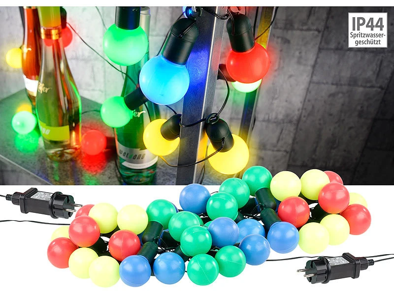 - 2 LED-Lichterketten je inklusive Netzteil und deutscher Anleitung – Party Lichterkette Outdoor – Außerdem relevant oder passend zu: Kette, Disco, Kugel, Balkon, Garten, Outdoor, Glühbirne, wasserdicht, Netzstecker, Leuchtmittel, Lichtschlauch