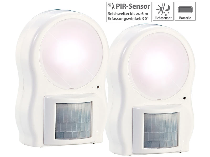 - 2 Leuchten jeweils inklusive Montagematerial und deutscher Anleitung – LED Lampe Bewegungsmelder Batterie – Außerdem relevant oder passend zu: innen, Strahler, ohne Strom, Lampe Bewegung, Nachtlicht aussen, Dämmerungsschalter