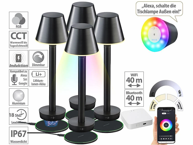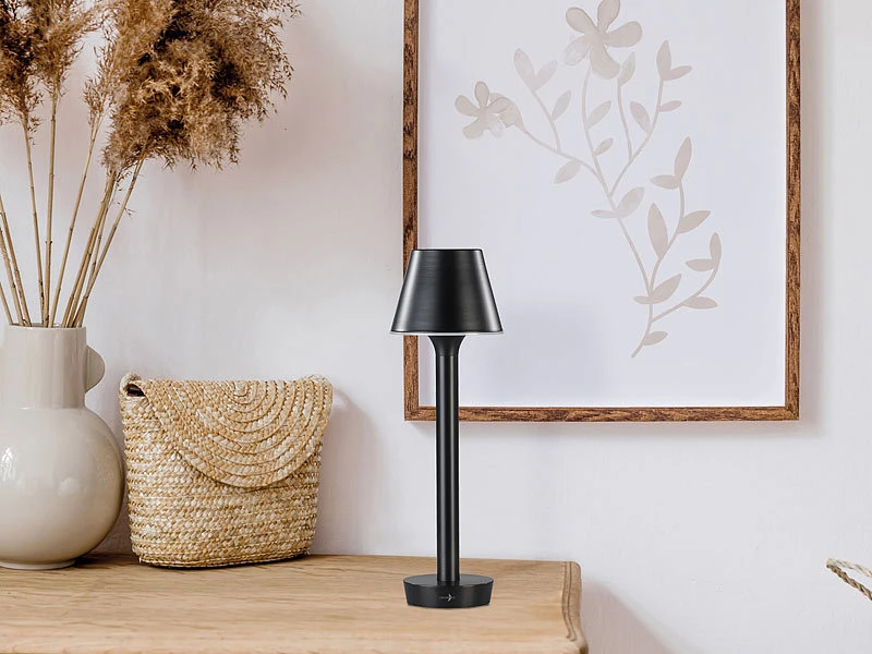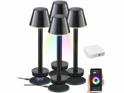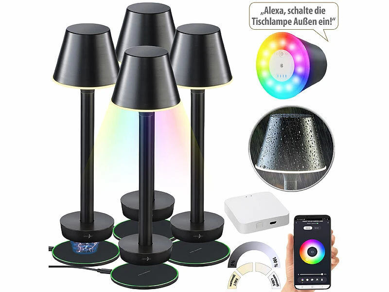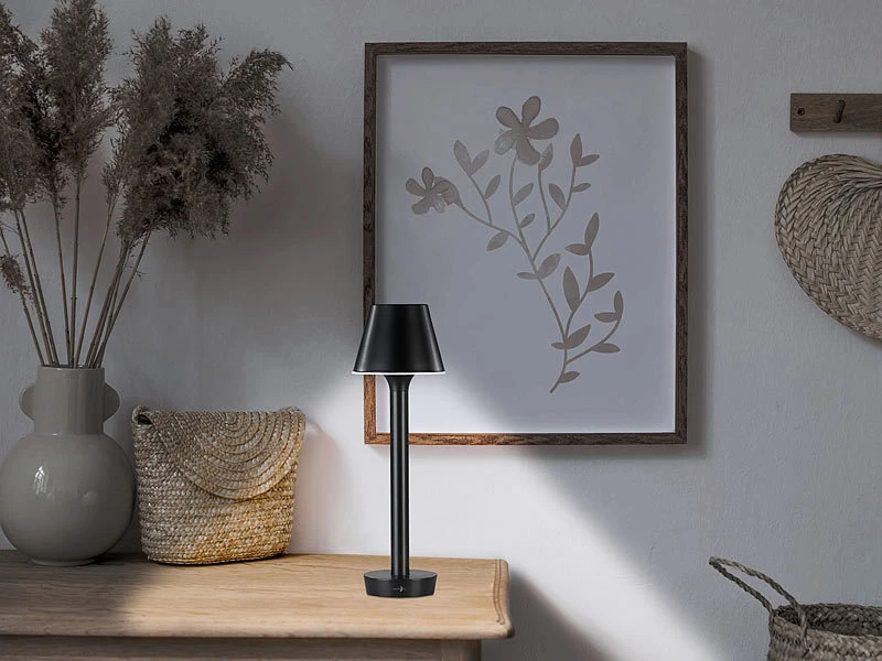 - Kabellose Outdoor-Tischlampe mit Akku und Qi-Ladematte