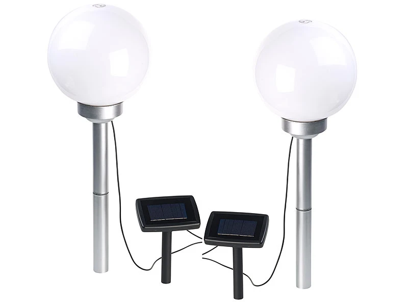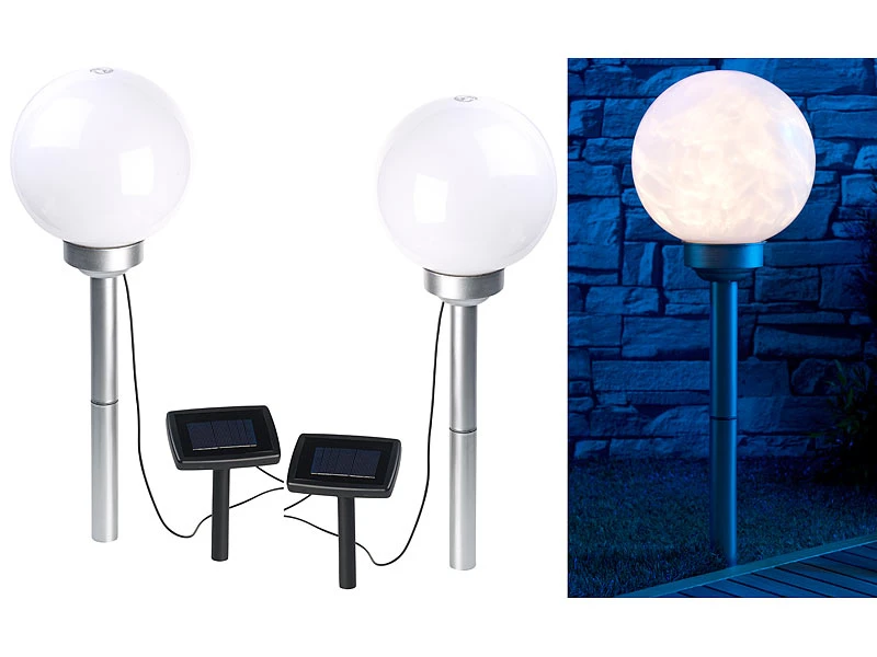 - 2 Leuchtkugeln inklusive Solarpanels, Stand-Säulen, Erdspießen und deutscher Anleitung – Solar-Kugeln für Außenbereiche – Außerdem relevant oder passend zu: Ball, Kugel, Lampen, Beleuchtung, Wegeleuchten