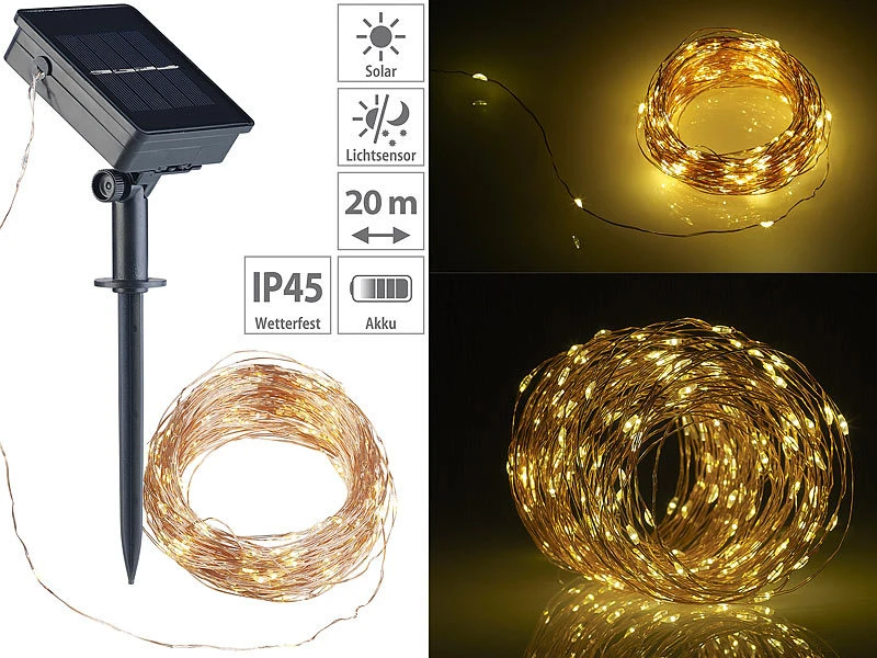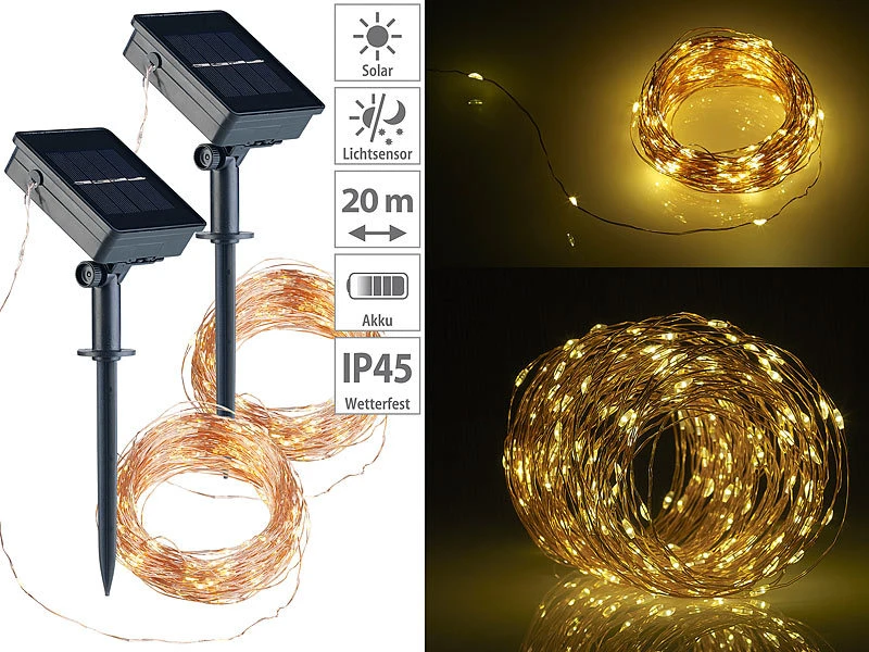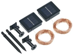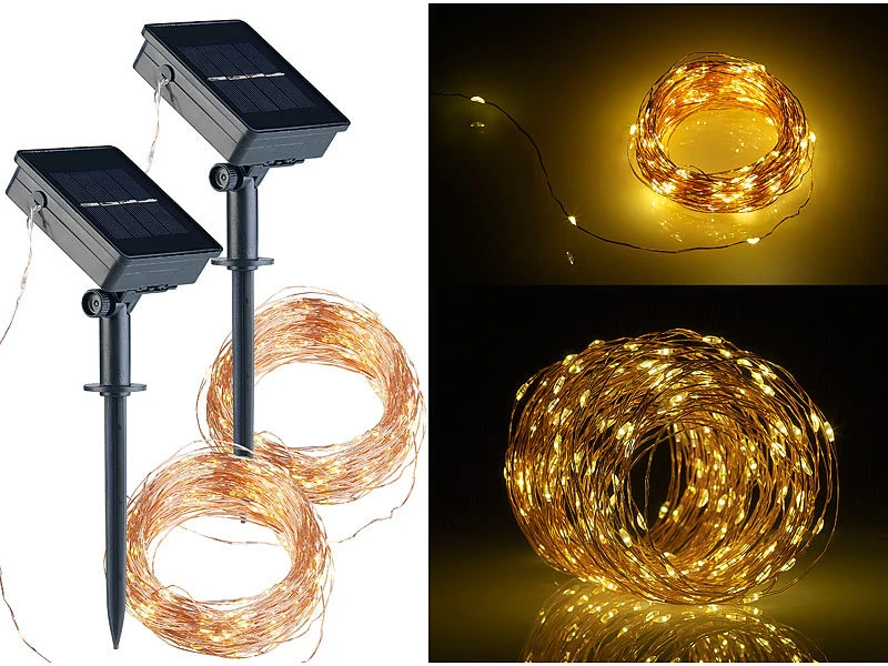 - 2 Lichterketten je mit Solarpanel inklusive Halterung für Solarpanel, Erdspieß und deutscher Anleitung – Solar Lichterkette Kupfer – Außerdem relevant oder passend zu: Party, Kette, Ostern, Streifen, Schlauch, Halloween, Weihnachten, Solarleuchte, Solarleuchten, Weihnachtsdeko, Batterie Leuchten