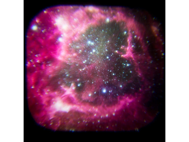Doch das ist nicht alles: Unter dem Ganzkuppelprojektor befindet sich noch ein Projektor für Bilderkassetten, die das Weltall zum Anfassen nah wie Dias an die Wand projizieren. Sehen Sie fantastische Weltall-Bilder in prächtigen Farben: Supernovae, Sternenebel und Galaxien.