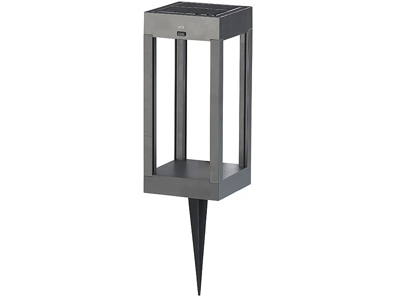 - Stromversorgung Laterne: integrierter Li-Ion-Akku mit 1.200 mAh für bis zu 10 Std. Laufzeit, lädt per Solar-Panel