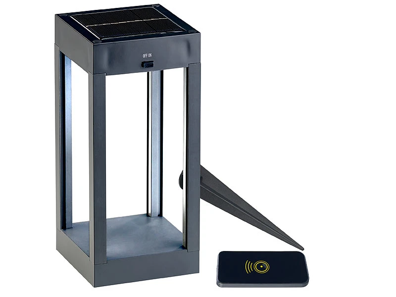 - Fernbedienung zur Steuerung der Leucht-Modi: weiĂźes Licht ein, RGB-Farbwechsel ein, Laterne aus