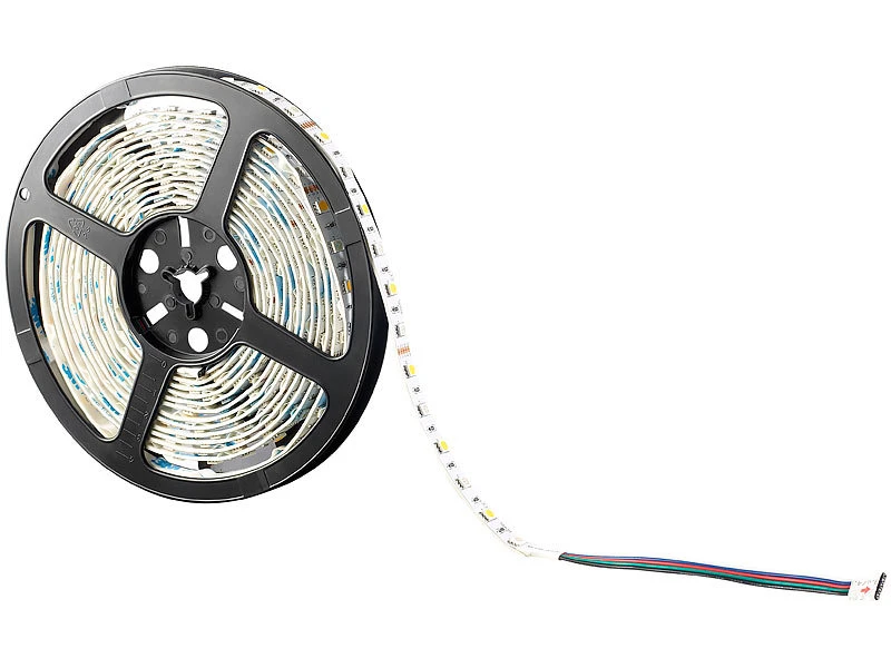 - LED-Streifen auf der Rolle mit 300 SMD-LEDs auf 5 m Länge