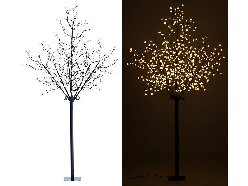 Setzen Sie funkelnde Lichtakzente im Garten, Hof, Schaufenster oder Wohnzimmer. Tagsüber erfreut der lebensgroße Baum mit aparten japanischen Kirschblüten, abends strahlt er mit 600 warmweißen LEDs.