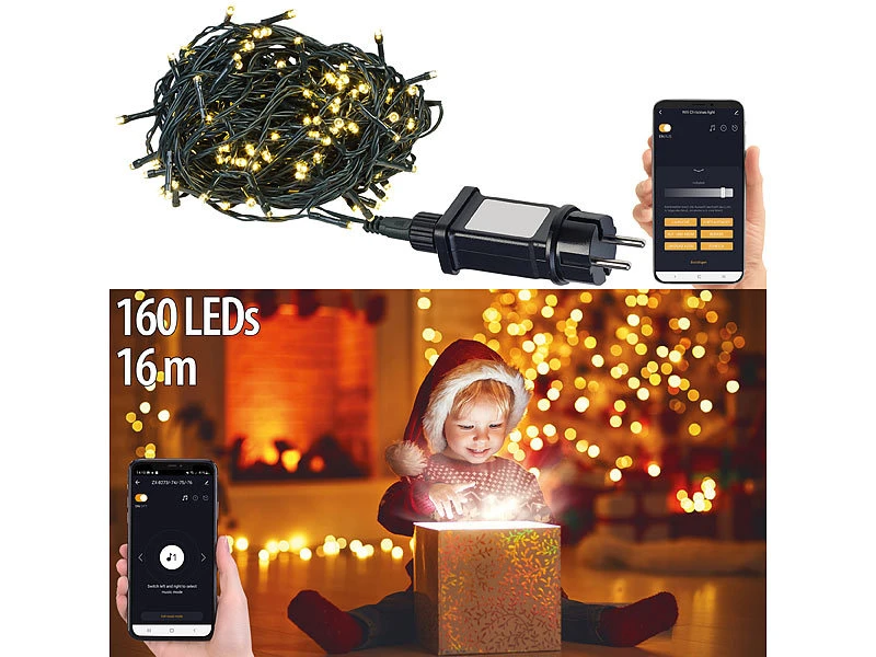 Lunartec LED Lichterketten 220V:2er Set Wifi LED Lichterkette Mit 160 LEDs, Warmweiß,für Innen & Außen
