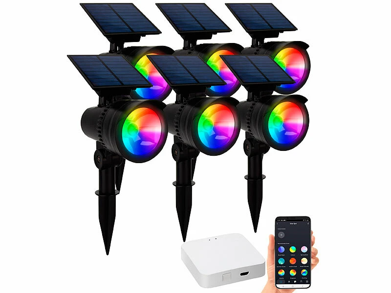 - 6er-Set Solar-LED-Spots inklusive ErdspieĂź, WLAN-Gateway und deutscher Anleitung