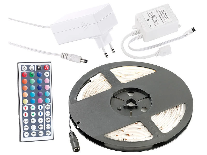- LED-Streifen inklusive Netzteil, Fernbedienung, Empfänger, Knopfzelle und deutscher Anleitung – LED Strip Regenbogen – AuĂźerdem relevant oder passend zu: Band, bunt, Möbel, Kette, Party, Stripe, Strips, Effekt, Leiste, Stripes, Aquarium, Lichtband, Leuchtband, Controller, Farbwechsel, Lichtbänder, Lichterkette, Lichtschlauch, Lichterketten, Lichtstreifen, Leisten Kleben, Fernbedienungen, Glaskantenbeleuchtung