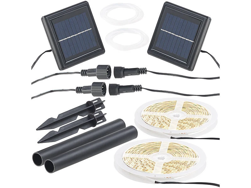 - LED-Streifen inklusive Solarpanel, Erdspieß und deutscher Anleitung im 2er-Set – Solar LEDstreifen – Außerdem relevant oder passend zu: Band, Teich, Zelte, Grill, Blumen, Garten, Stripe, Strips, Outdoor, Grillen, Stripes, Schlauch, Terrasse, Leseleuchte, Lichtleiste, Beleuchtung, Batterie, Lichterketten, 12V Lichterkette