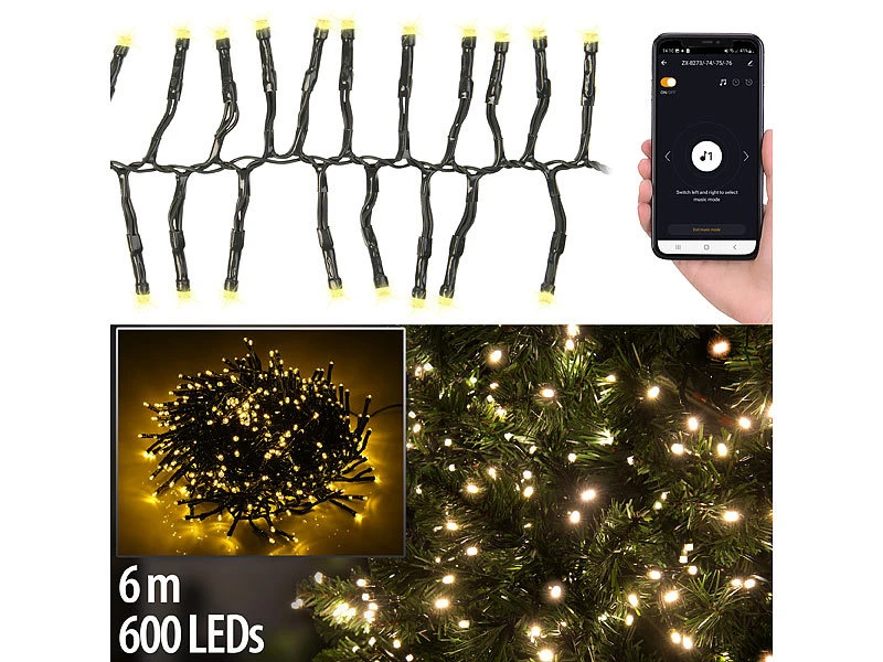 Genießen Sie stimmungsvolle Momente: Ganze 600 LEDs sorgen für angenehm warmweißes Licht. Wählen Sie einfach aus 8 Leucht-Modi den für Sie passenden – z.B. Dauerleuchten für den gemütlichen Grillabend oder wild blinkend für die Geburtstags-Party. Aktivieren Sie auch die Musiksteuerung und genießen Sie dank integriertem Mikrofon Licht im Takt Ihrer Lieblingssongs.