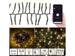 Behalten Sie per App „ELESION“ die volle Kontrolle – von weltweit: Steuern Sie Helligkeit und Leuchtmodus bequem vom Sofa aus per Smartphone und App. Soll sich Ihre Lichterkette z.B. abends automatisch ein- oder ausschalten, dann setzen Sie einfach einen individuellen Timer. Lichtsteuerung war noch nie so komfortabel!