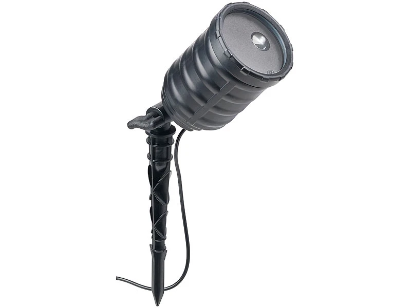 Aufhängen oder aufstellen: Befestigen Sie Ihren Projektor an der Wand oder stellen Sie ihn per Erdspieß auf. Dank kippbarem Gelenk genießen Sie die Lichteffekte stets aus dem passenden Winkel.
