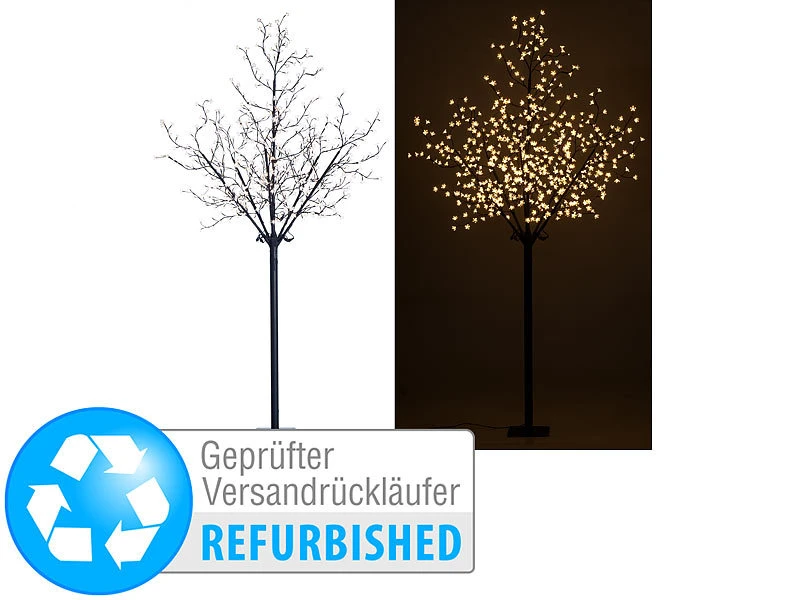 Setzen Sie funkelnde Lichtakzente im Garten, Hof, Schaufenster oder Wohnzimmer. Tagsüber erfreut der lebensgroße Baum mit aparten japanischen Kirschblüten, abends strahlt er mit 600 warmweißen LEDs.