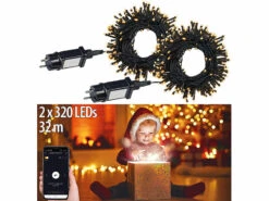 Lunartec Lichterkette 230 Volt:2er Set Wifi LED Lichterkette Mit 320 LEDs, Warmweiß,für Innen & Außen