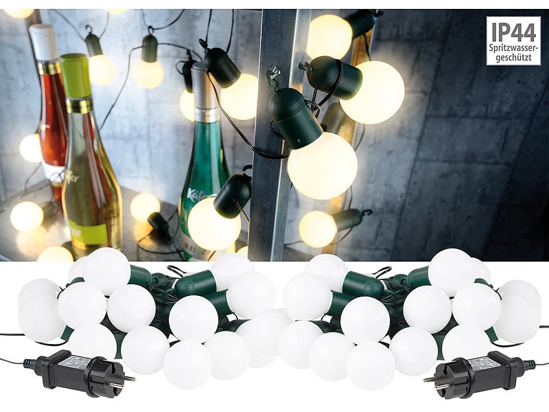 Attraktive Optik mit moderner Technik: Die klassische Glühbirnen-Form ist von jeher an Lichterketten beliebt. Dank modernster LED-Technologie sparen Sie jetzt dabei viel Strom und genießen eine lange Lebensdauer von 10.000 Betriebsstunden.