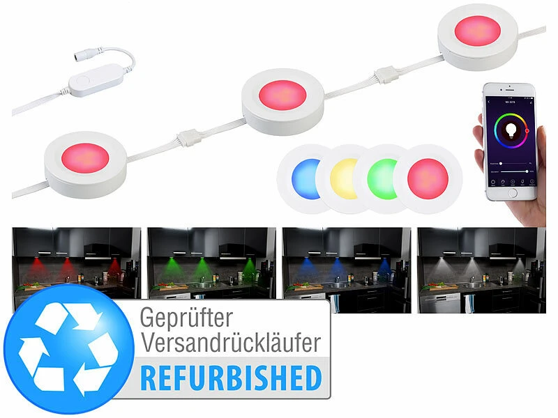 Peppen Sie Ihr Zuhause mit bunten LED-Lichtern auf! Schrauben oder kleben Sie die farbenfrohen Unterbauleuchten im Handumdrehen an Küchenschränke, Vitrinen, Regale u.v.m.