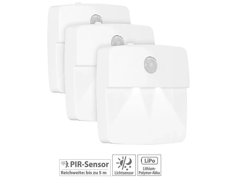 - 3er-Set LED-Nachtlicht inklusive USB-Ladekabel und deutscher Anleitung – Stufenlicht – Außerdem relevant oder passend zu: Zelt, Lampen, Lichter, Leuchte, Leuchten, Baby Kinder, Lichtsensor, Notbeleuchtung, Bewegungssensor, batteriebetrieben, innen, Lampe, Bewegungsmelder Batterie