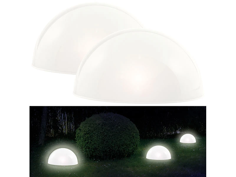 - 2 wetterfeste Leucht-Halbkugeln mit integriertem Solarpanel