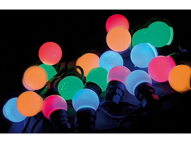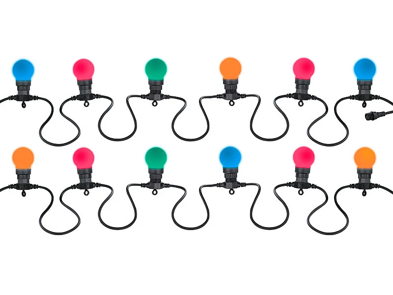 – LED Party Lichterkette auĂźen – AuĂźerdem relevant oder passend zu: in, 220V, bunte, Kette, Disco, Strom, Retro, Birnen, drauĂźen, Vintage, Outdoor, Leuchten, wasserdicht, Gartenparty, Leuchtmittel, GlĂĽhbirne bunt, Garten Deko Beleuchtung - EAN: 4022107230278