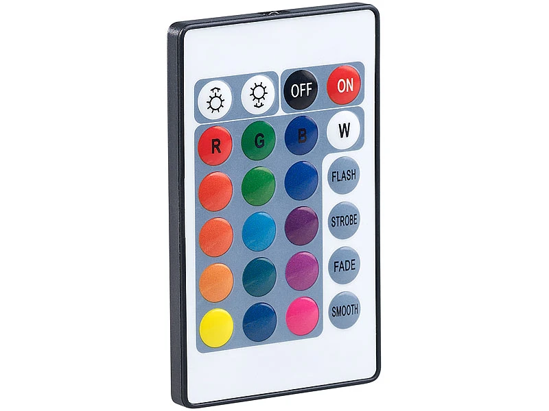 - Einfache Steuerung per IR-Fernbedienung: ein/Timer, aus, heller, dunkler, Farben, Farb-Modi