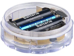 - Maße Leuchten (Ø x H): je 75 x 35 mm, Gewicht (ohne Batterien): je 75 g