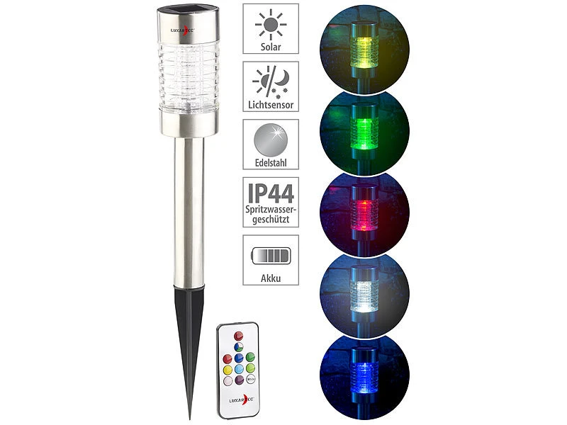 - Solar-Wegeleuchten inklusive Erdspieß, Fernbedienung mit Knopfzellen-Batterie (CR2025) und deutscher Anleitung – Gartenlampen Solar – Außerdem relevant oder passend zu: Lampe, Garten, Strahler, Beleuchtung, Fernbedienungen