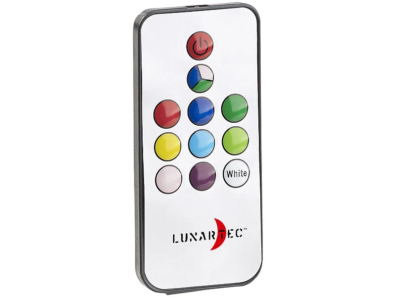 - RGB-LED für Licht in Rot, Blau und Grün: Farbauswahl und automatischer Farbwechsel per Fernbedienung wählbar