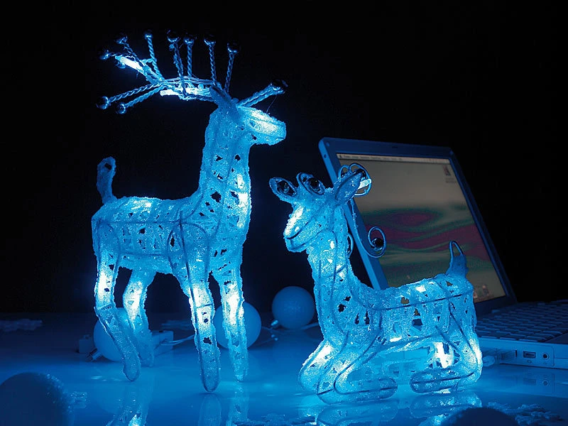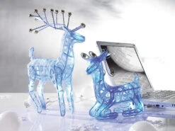 Sie können sich die Dienste dieser zwei Rentiere schon jetzt sichern. Durch ihre unzähligen Glitzerperlchen und schimmernden Pailletten verbreiten die beiden LED-Rentiere eine besonders gemütliche Winterstimmung.