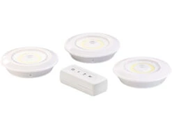 - Maße Leuchten (Ø x H): je 90 x 22 mm, Gewicht (ohne Batterien): je 42 g