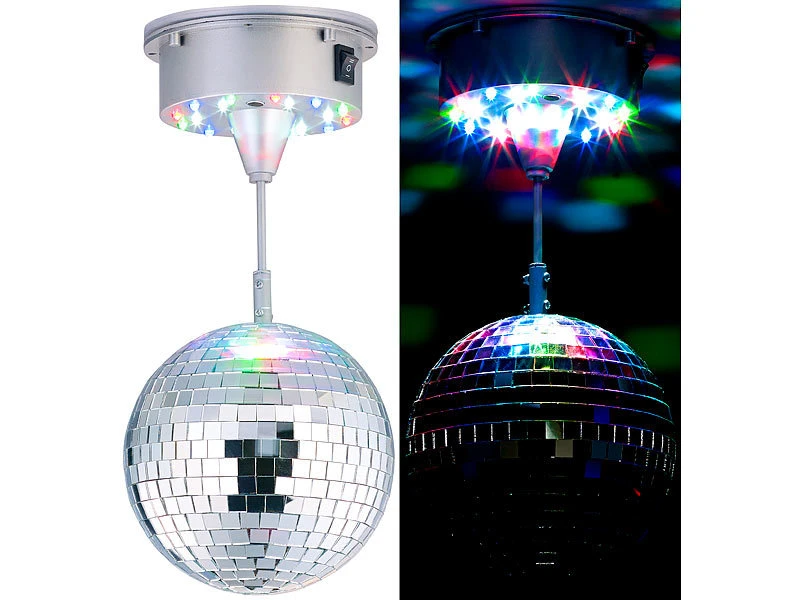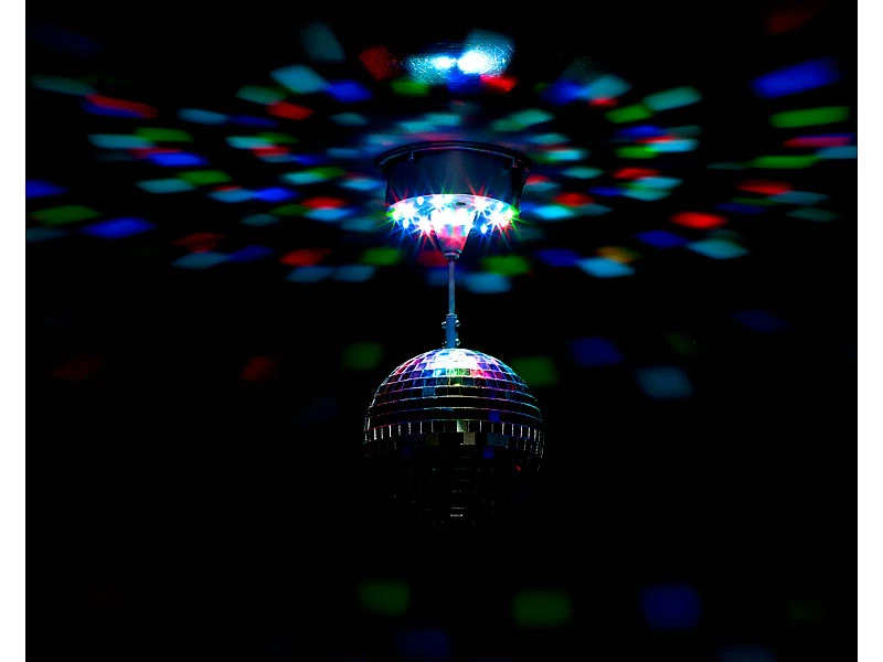 Der Klassiker unter den Lichteffekten: Schaffen Sie im Partykeller oder im Wohnzimmer eine unvergessliche Club-Atmosphäre. Durch bunte LEDs angestrahlt zaubert die selbstdrehende Discokugel fantastische Lichtreflexe an Decke und Wände.