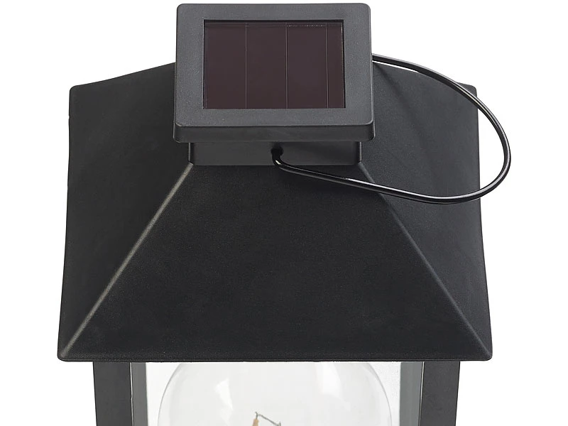 - Maße Laterne: 14 x 27,5 x 14 cm, Solarzelle: 4,5 x 4,5 cm, Gewicht: 610 g